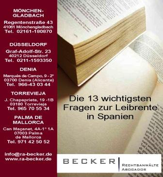 In der morgigen Ausgabe der Mallorca Zeitung erscheint ein Beitrag von Rechtsanwalt Niels Becker zur Leibrente in Spanien. Parallel hierzu kann ein Informationsblatt auf der Startseite heruntergeladen werden.