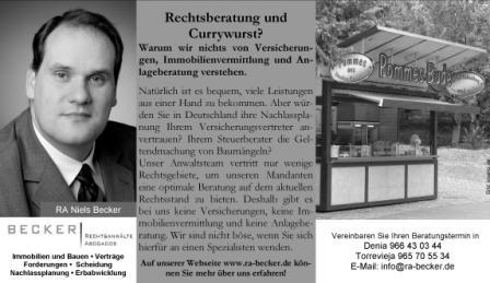 Am 20. September 2007 findet ab 19.30 h im MR Hotel Las Rotas in Denia die vierte Veranstaltung des Costa Blanca Business Netzwerks statt, zu dessen Gründern Rechtsanwalt Niels Becker gehört.